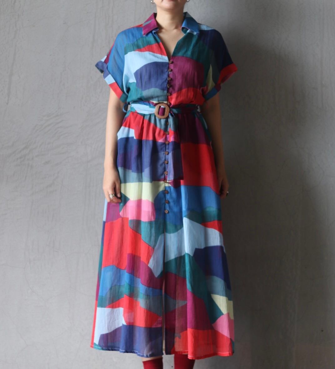 アコークロー(夕暮れ時)を連想させるガーゼの様なコットンワンピース。陳列したココナッツボタンは、南国をイメージさせリラックススタイルだけどお洒落な雰囲気です◎