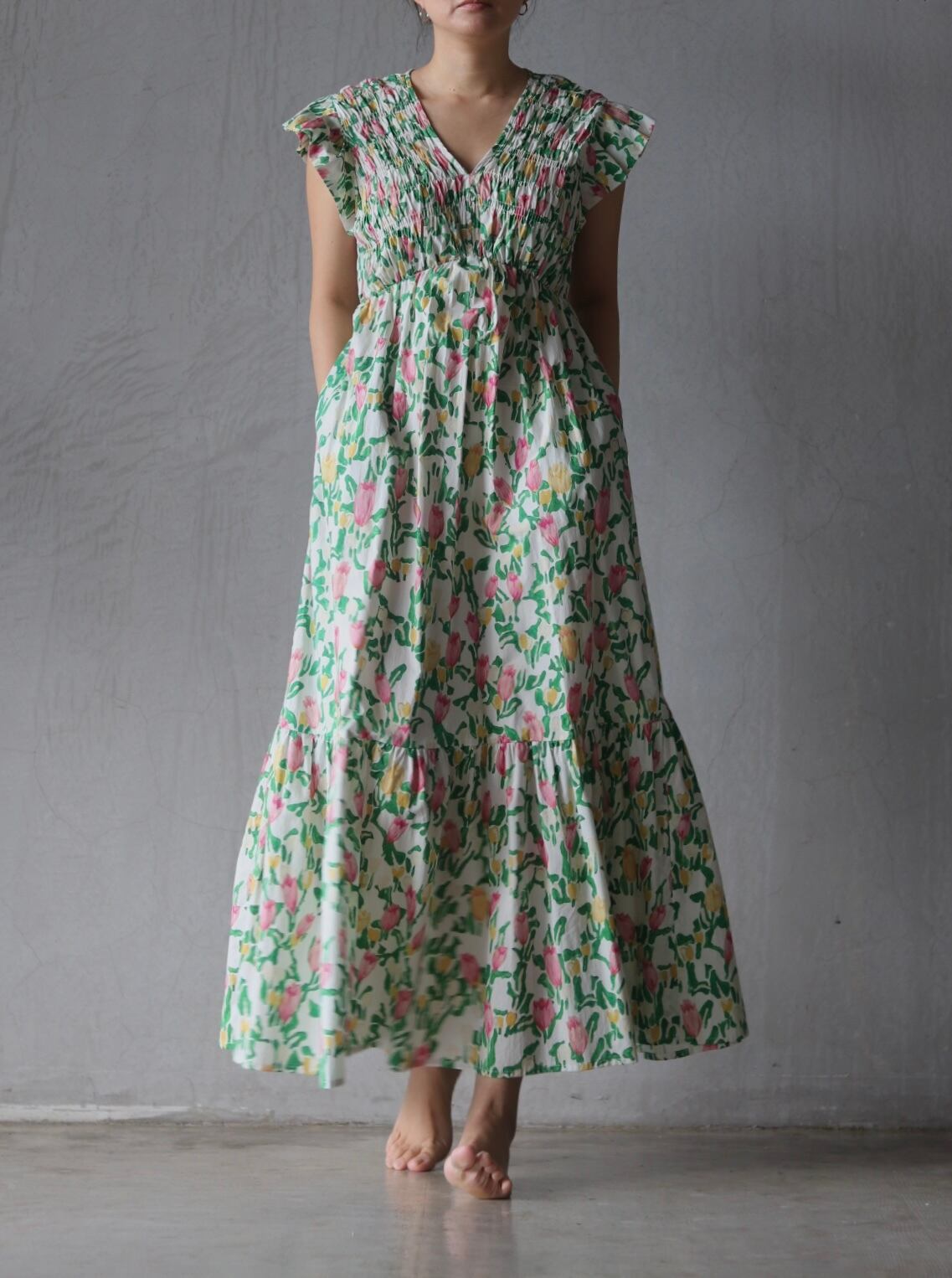 胸周りにはシャーリングが入っていて包まれた様な着心地です◎
