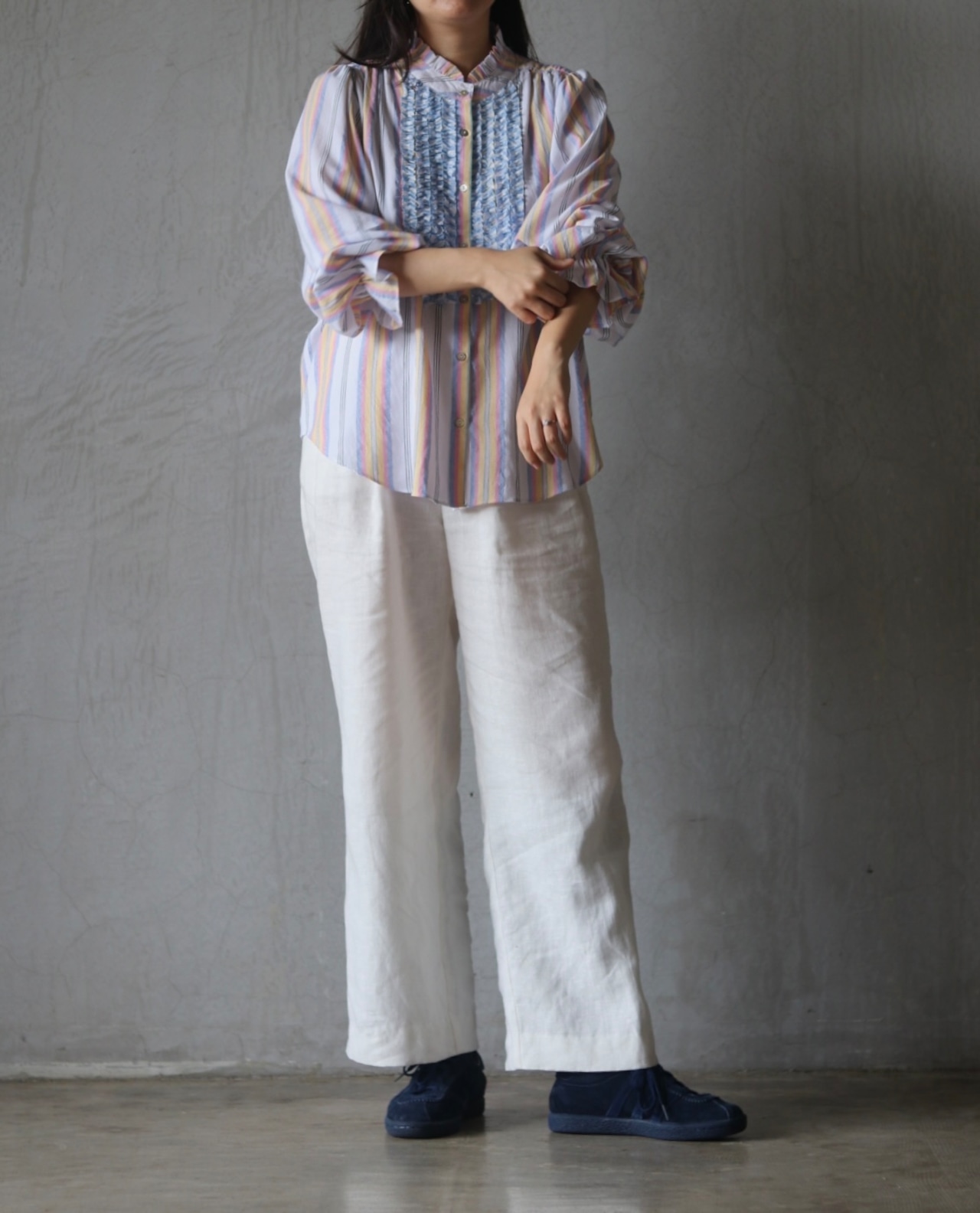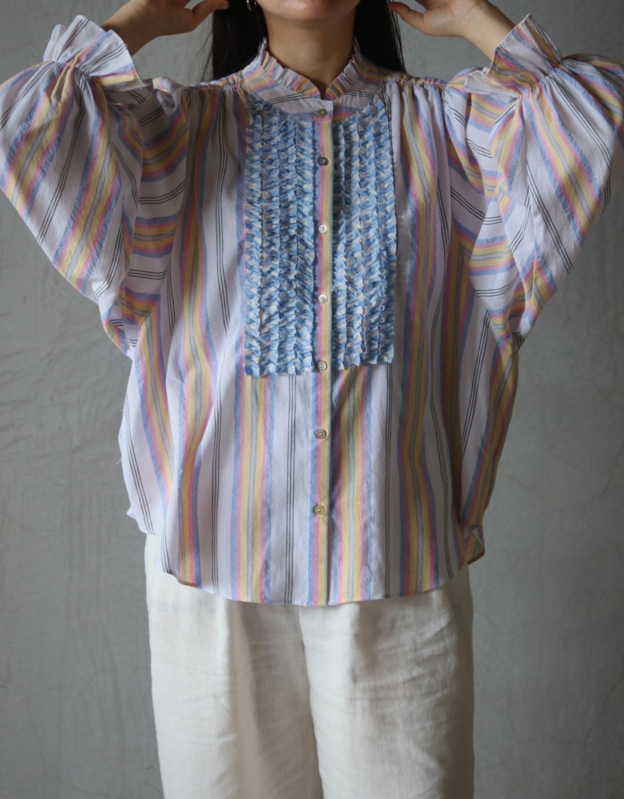 ストライプのブラウスは、正に春の装いにピッタリ。