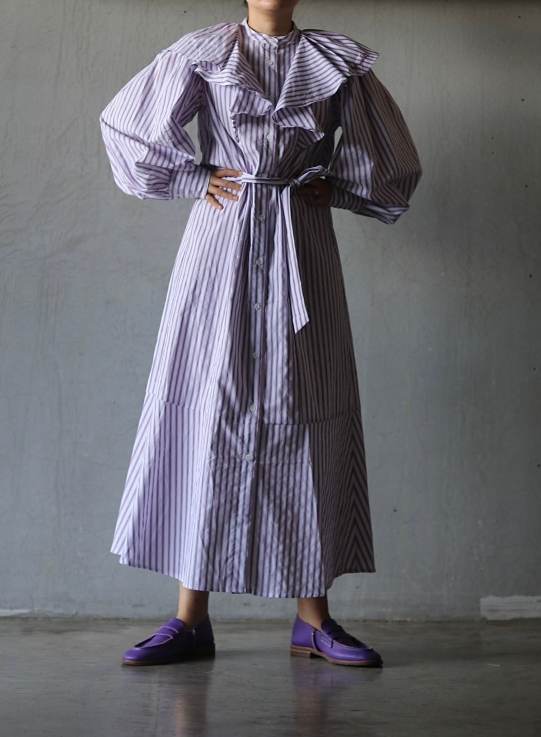ボリュームのある襟元には、刺繍がほどこされたり何気ないデザイン。