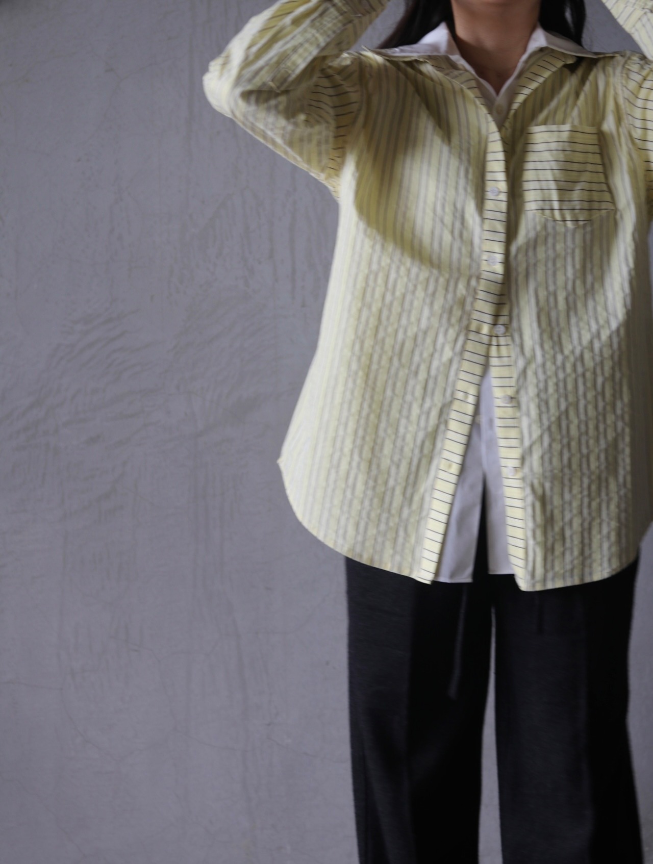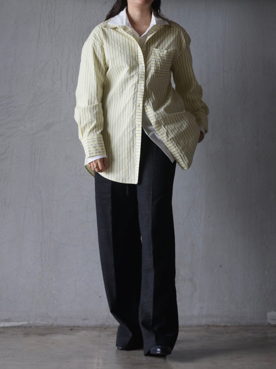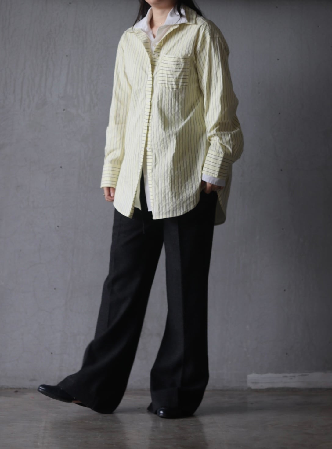 シャツにシャツを重ねて、ウールのパンツを合わせてみました。